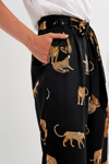 Beautiful and elegant wide leg satin pants. With a leopard print to die for. Comes with attached belt.
